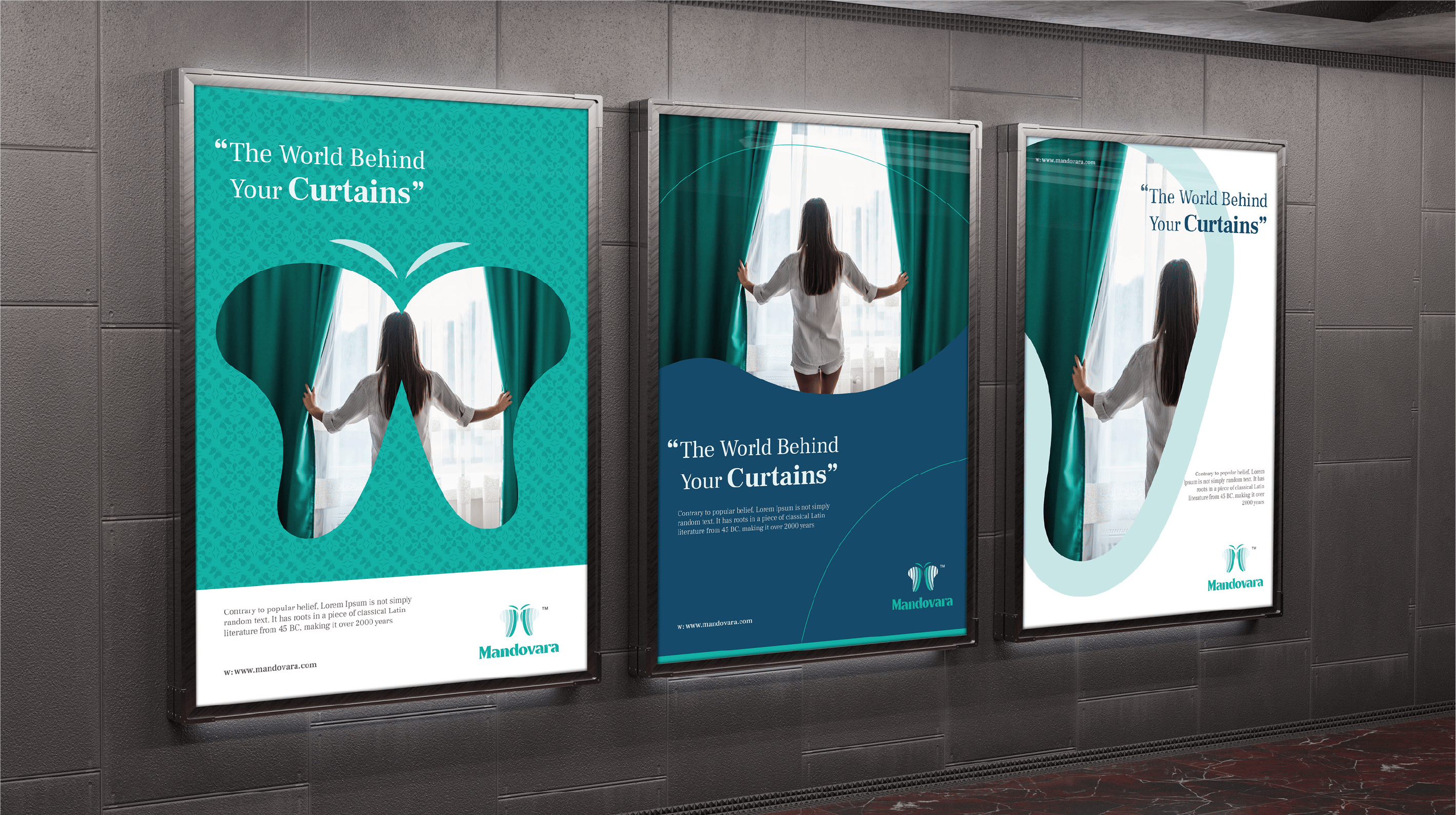 Mandovara Brand Identity What We brought to Life: Curtain Brand—designed with a stylish brand identity, reflecting elegance, quality, and modern home decor.