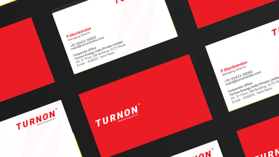 Turnon Brand Identity What We brought to Life : Electric Products—powered with a dynamic brand identity, reflecting innovation, reliability, and modern technology.